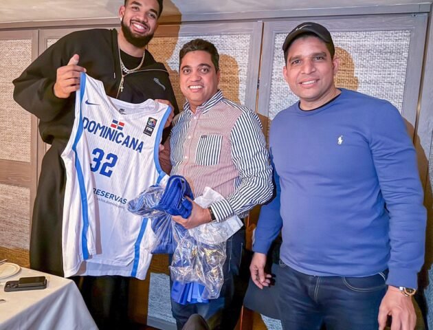 Ministro Kelvin Cruz y la súper estrella de la NBA Karl Anthony Town comparten en New York.