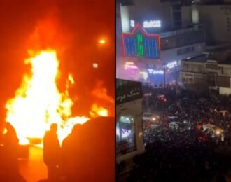 Disturbios durante protestas en Irán dejan edificios incendiados en la ciudad de Karaj