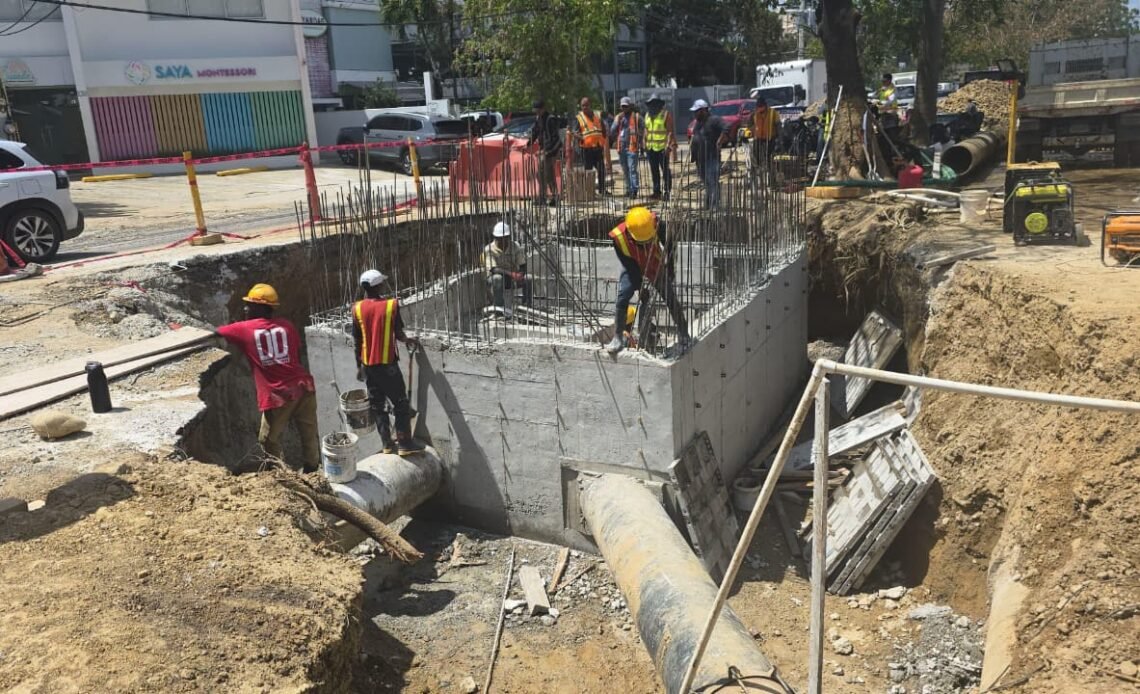 La Corporación del Acueducto y Alcantarillado de Santiago informó que se encuentra en la fase final de los trabajos de corrección de una avería en una línea de 24 pulgadas, junto con la instalación de una válvula y la construcción de un registro en la avenida 27 de Febrero esquina calle Erick Eckman, en Santiago de los Caballeros.